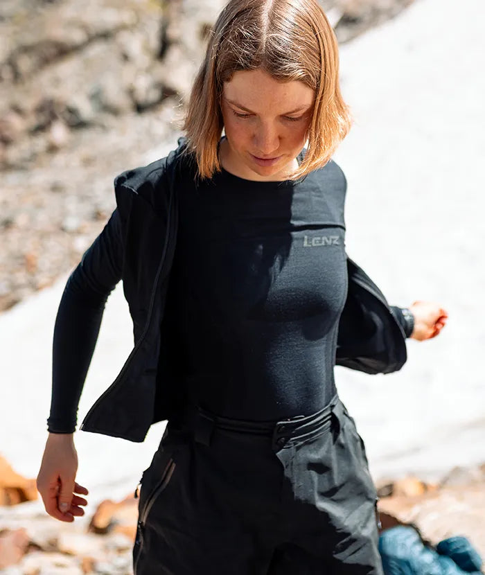 Les coutures plates et le revers confort évitent les points de pression. Les zones côtelées flexibles garantissent que la manche longue suit chaque mouvement.