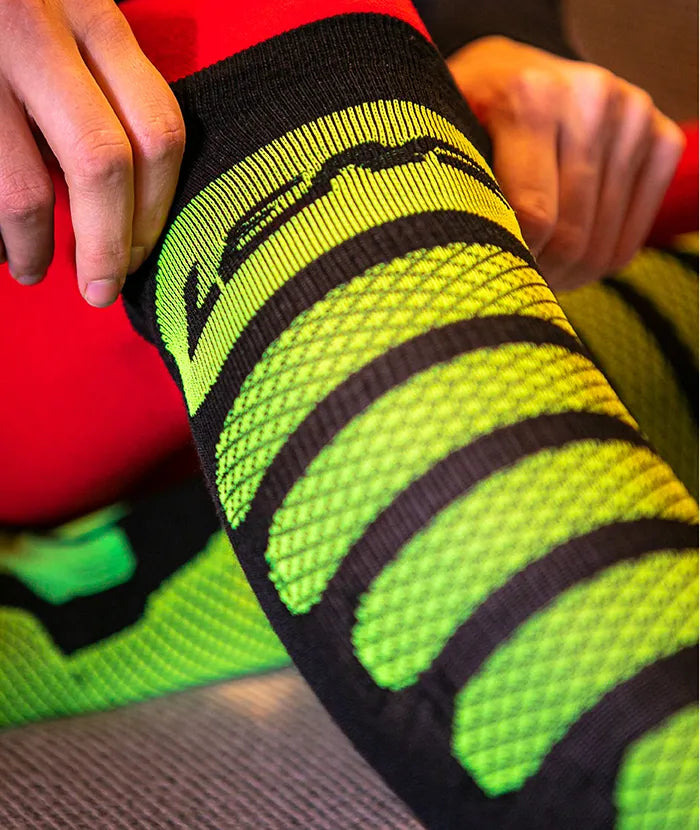 Les chaussettes sont tricotées serrées et assurent un ajustement sans ampoules grâce à la large bande de confort et au bandage annulaire.
