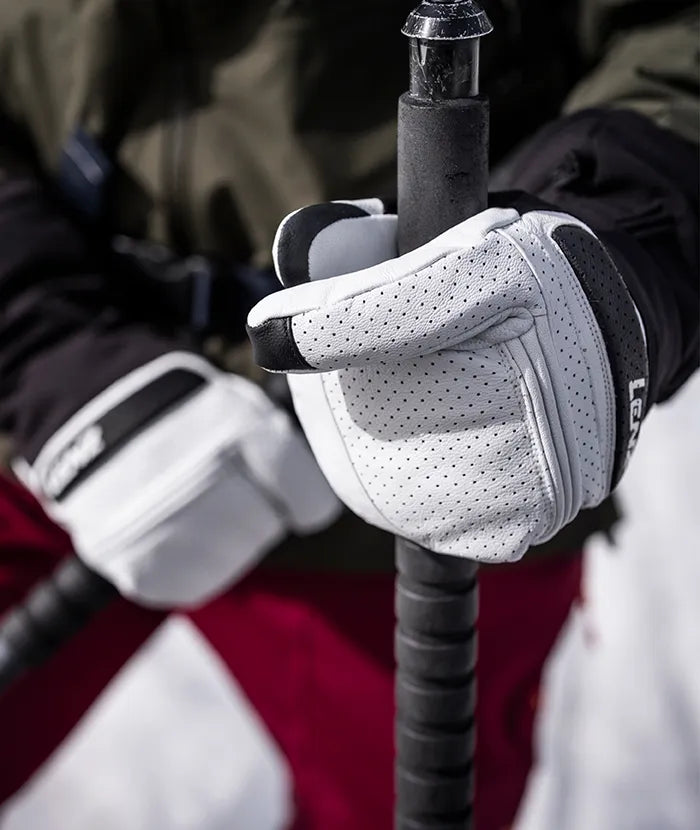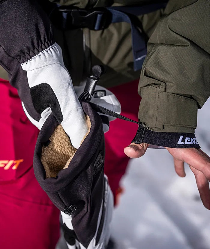 Hochwertiges Ziegenleder auf der Oberseite macht die Handschuhe besonders strapazierfähig, während das flexible 4-Wege-Stretch-Gewebe sich perfekt mit deiner Handform harmoniert. Die Lavalan®-Isolierung aus europäischer Schafschurwolle und das weiche, recycelte Innenfutter garantieren angenehme Wärme und leiten Feuchtigkeit zuverlässig nach außen.